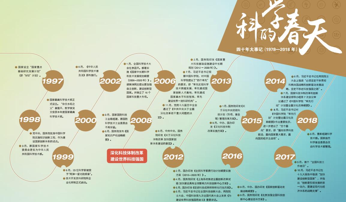 1978?年?3月,黨中央召開全國科學(xué)大會,迎來了“科學(xué)的春天”。從科學(xué)技術(shù)是第一生產(chǎn)力、科教興國到實施創(chuàng)新驅(qū)動發(fā)展戰(zhàn)略,進入新時代把創(chuàng)新作為引領(lǐng)發(fā)展的第一動力、加快建設(shè)創(chuàng)新型國家,我國科技事業(yè)發(fā)展歷經(jīng)改革開放?40?年的艱苦努力和奮勇拼搏,結(jié)出累累碩果,正在邁向建設(shè)世界科技強國和支撐社會主義現(xiàn)代化強國建設(shè)的新征程。?