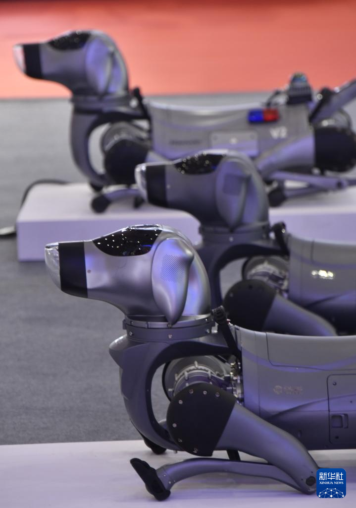 2025世界機器人大會上展示的智能機器狗(8月8日攝)。