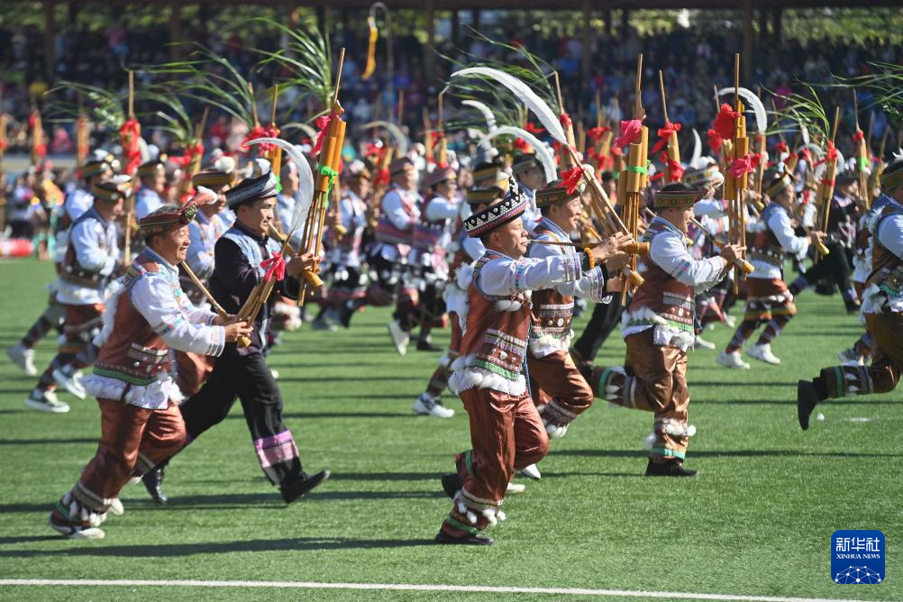 11月29日,表演者在融水縣民族體育公園舉行的蘆笙斗馬節(jié)開幕式現(xiàn)場(chǎng)表演。