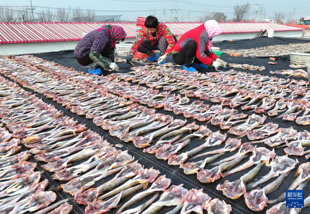 初冬時(shí)節(jié),河北省唐山市豐南區(qū)黑沿子鎮(zhèn)的漁民利用晴好天氣,將捕撈的魚蝦等海產(chǎn)品進(jìn)行加工、晾曬,供應(yīng)市場。